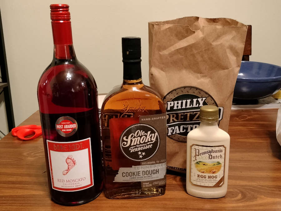 Then we decided we needed some booze; so, we hit the Wine and Spirits store around the corner from our apartment. We were hoping to grab some of mint chocolate chip whiskey we'd had at Pete's chili cookoff, but the store didn't have any.