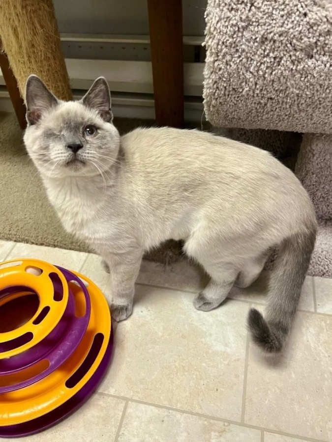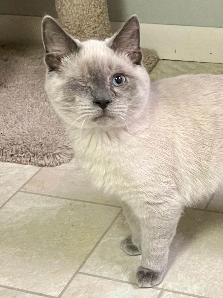 We came across several potential candidates—one of whom was a sweet-looking, one-eyed Siamese kitten named "Otis":