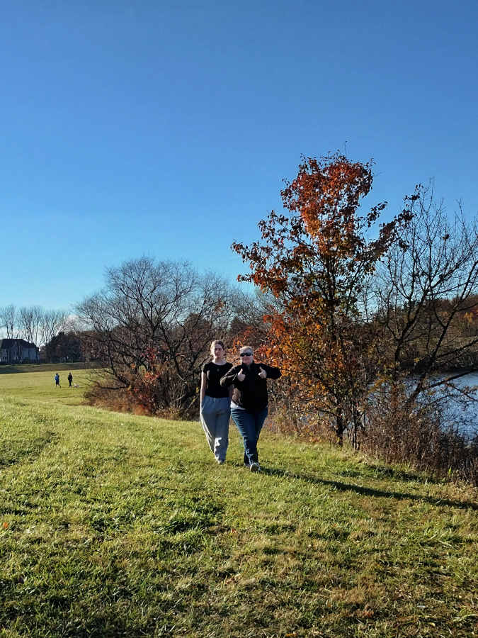 Oh. Also, there was this weird phenomenon in which my shadow (on the left) looked totally normal, while Riley's (on the right) had a little stick arm, and full-on sequoias for legs...
