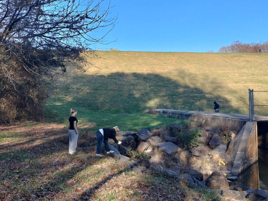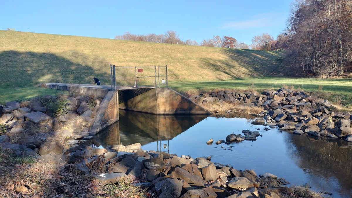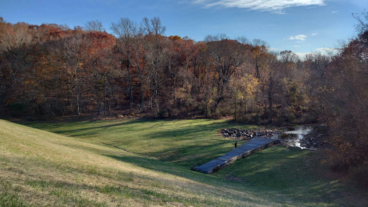 Adjacent to the not-actually-a-jetty is a berm with a hill leading down to the only not-actually-a-creek in this entire park...