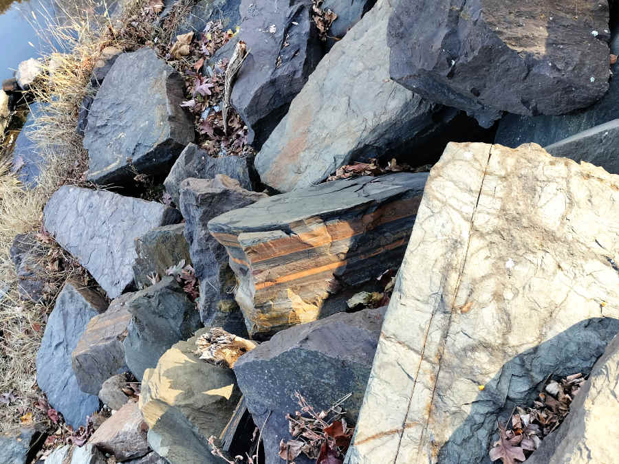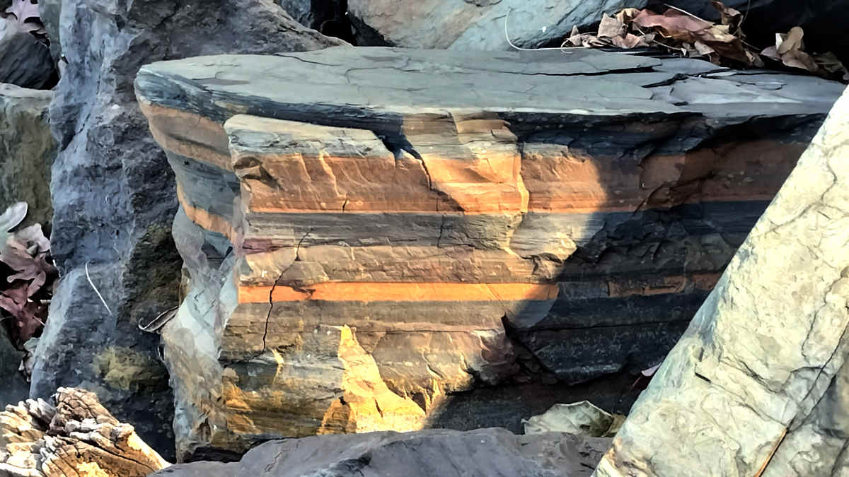 No signs of fish on these rocks; but, check out those strata!