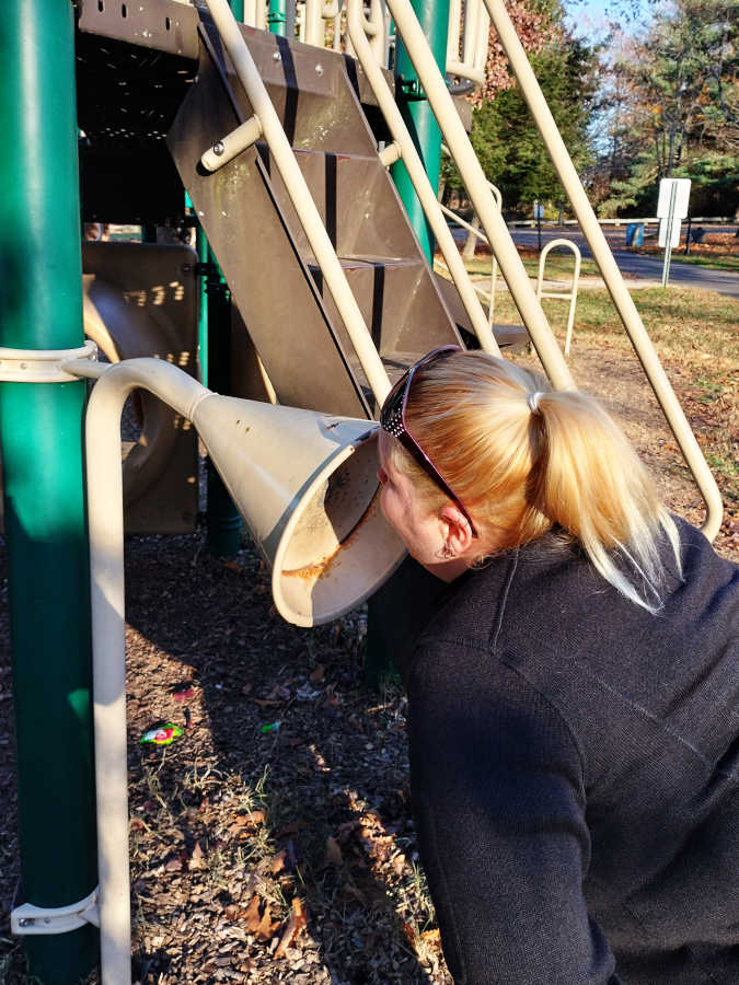 But, nothing spoils one's fun like blazing down the sliding board to find a puddle of something suspicious at the bottom...