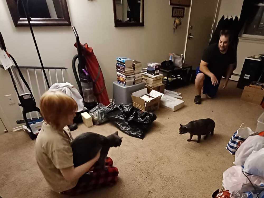 I don't know exactly how many books I have: Probably a couple thousand. Fortunately, around half of those are digital and have no mass or volume; but, the other half are big and heavy and require tons of space. At any rate, I didn't think I'd mind being apart from most of them for a couple weeks; so, we began there.
