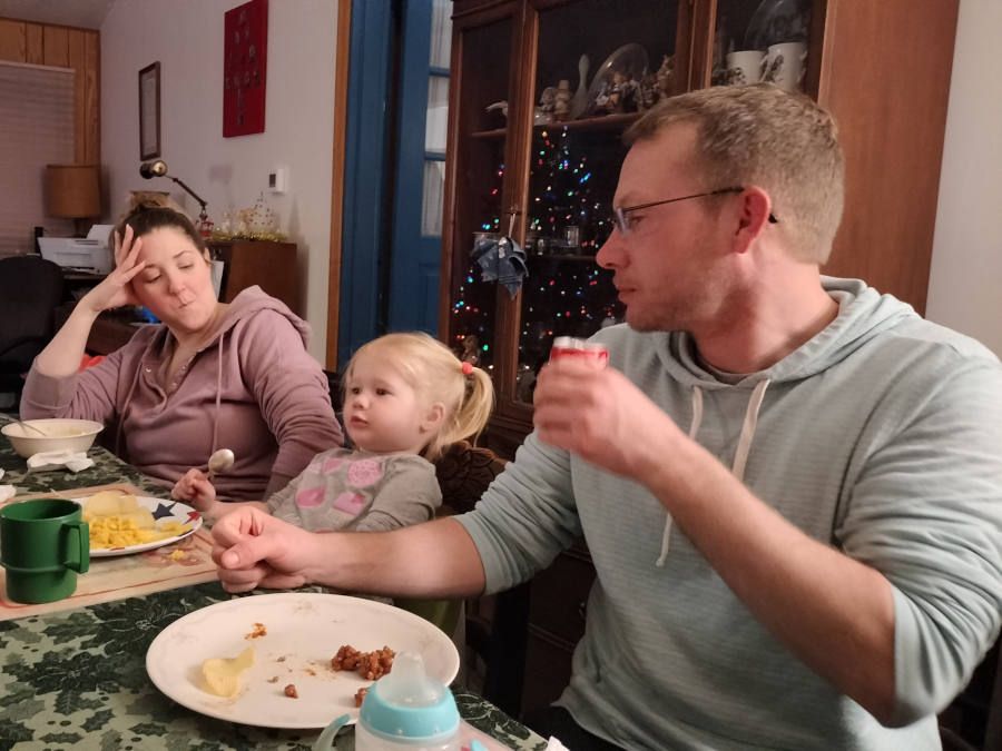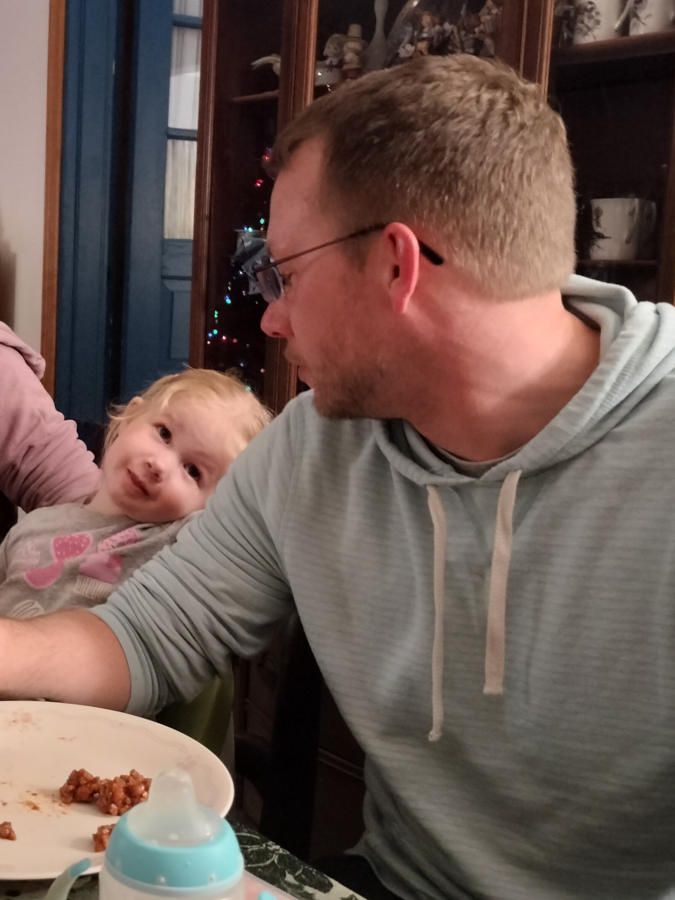 Kevin asked why Riley should be allowed to have dessert then (since she left literally just a bite or two of uneaten food on her plate). This got him a typical unimpressed glance from both of us: