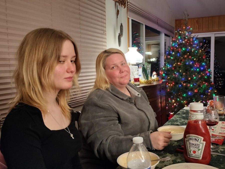 Last Sunday the 10th Kevin's mom invited us over for dinner: Cheesy cream of potato soup (and some popcorn chicken and mac and cheese for Riley, Olivia, and Hannah in case they didn't like the soup).