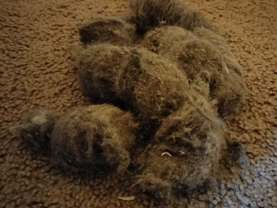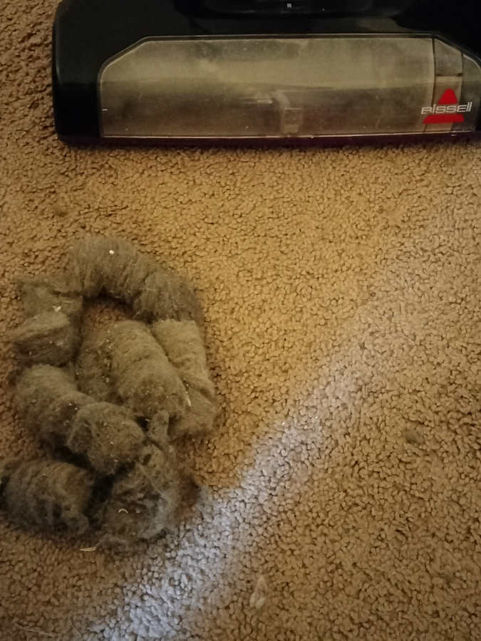 It was nearly 18 inches worth of solidly packed cat hair, litter, and dust at the end. And once we finally cleared it, the vacuum actually vacuumed again :)