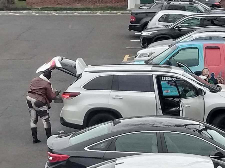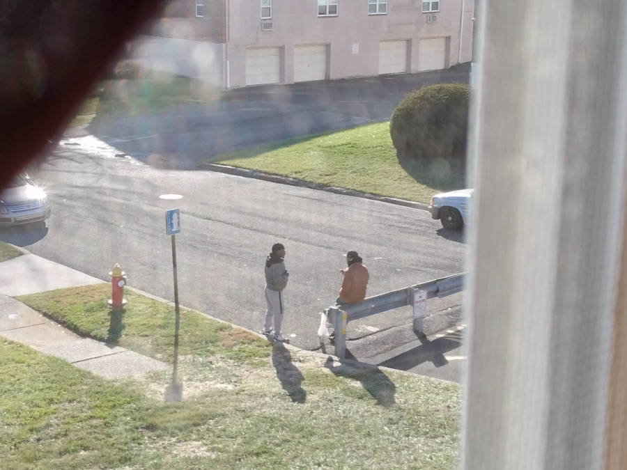 I literally had the non-emergency police number dialed, but then they bolted just as I was about to place the call. Two maintenance guys for that complex came along and took care of the rock, and a guy from one of the houses is out sweeping the glass back over to the far curb.