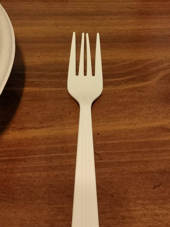 As we unpacked everything to dig in, Kevin grabbed my fork to inspect it and then tossed it back onto the table in dismay:
