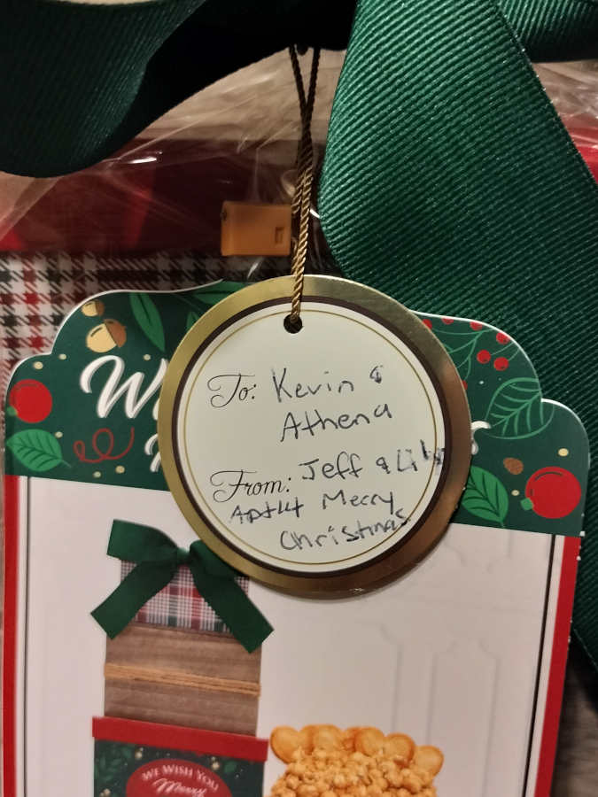 We opened the door, and they told us how much they appreciated all the tomatoes and other produce we gave them from our garden throughout the summer and the fall, and so they had got us a Christmas gift!