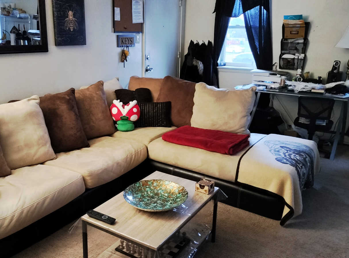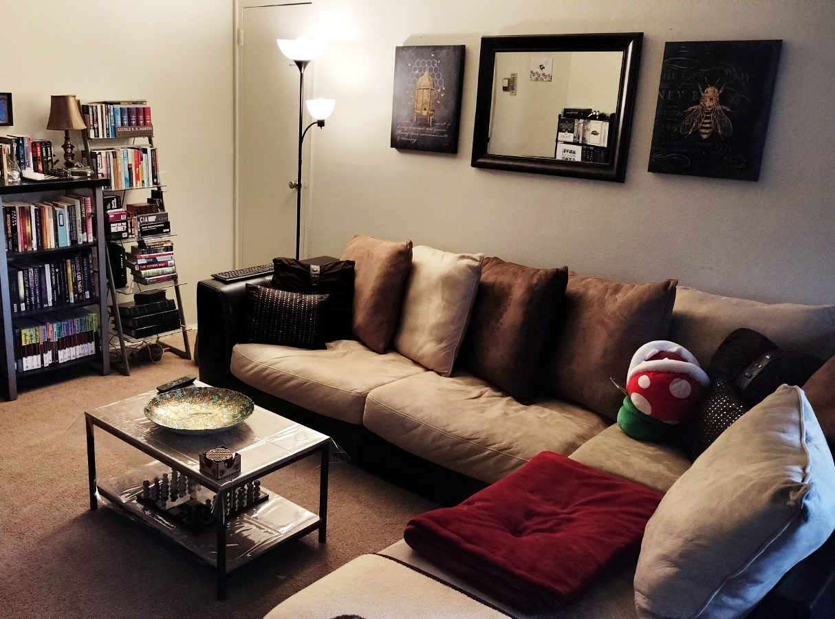 I snapped some pictures while our house was all nice and neat in preparation for company coming for Riley's party; so, here's a quick tour of the apartment...