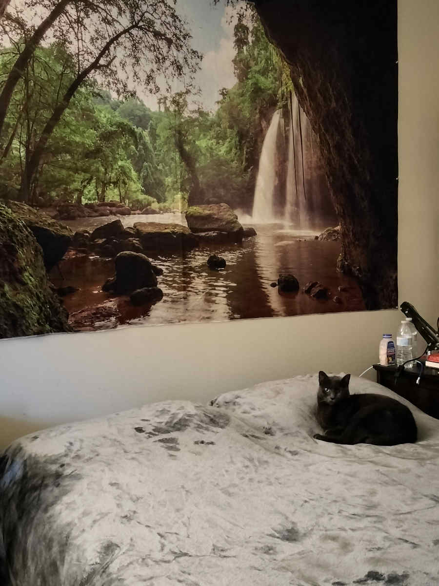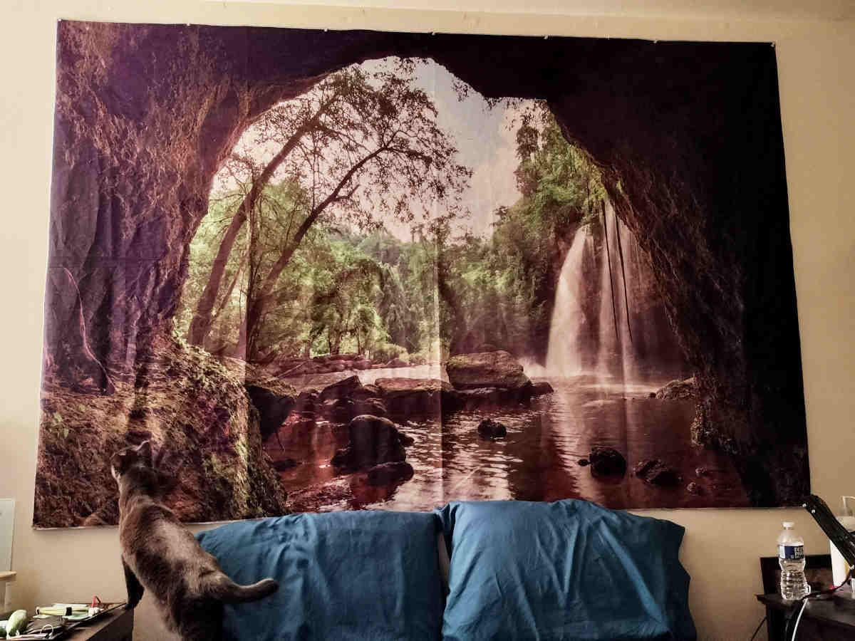 And, some artwork in our bedroom—thanks to a tapestry that my best friend Fotini bought me when we were living in Grenada together, which I never got around to hanging anywhere until now...