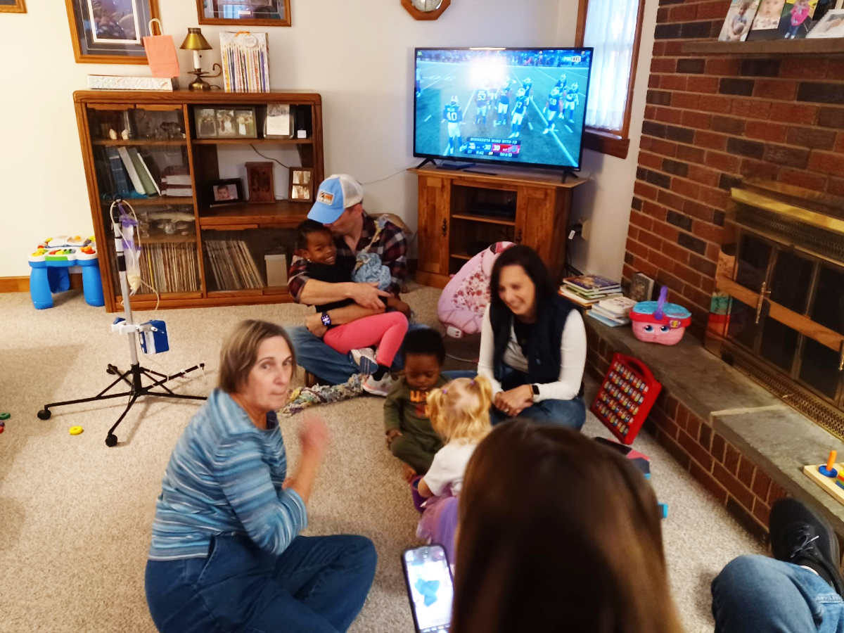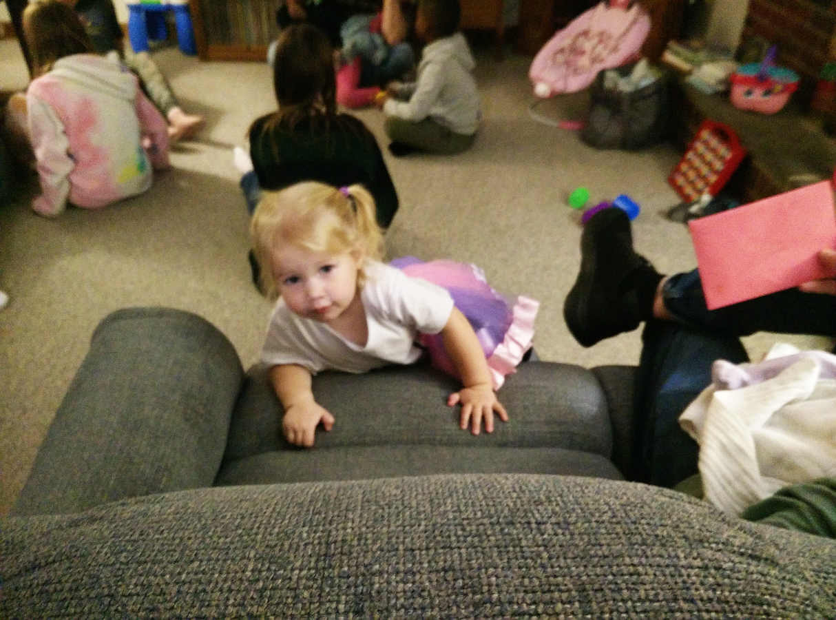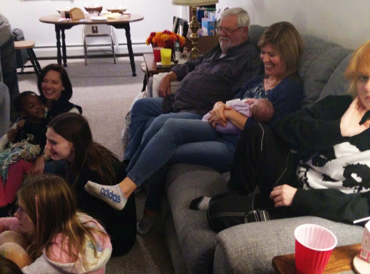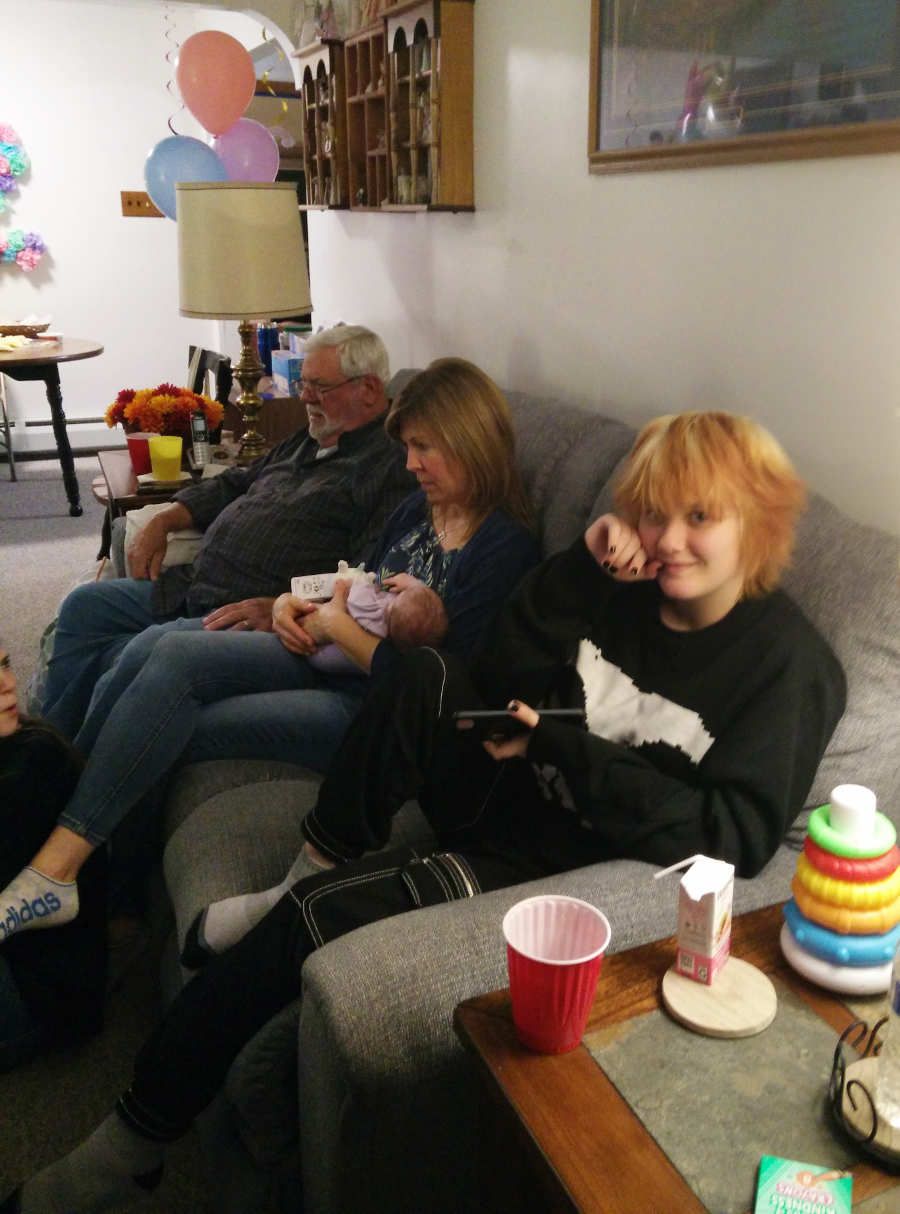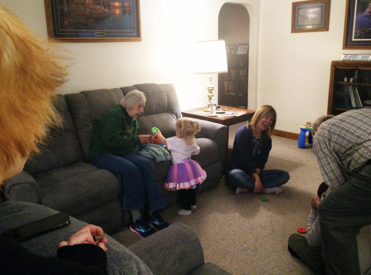 Then she felt Sue needed some doughnuts. And of course she wanted to sit on Pop's lap: