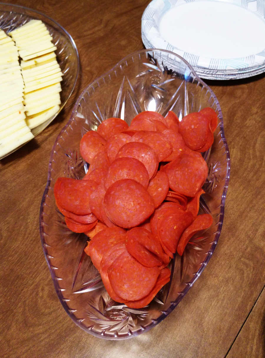 There were lots of munchies, and Kevin wants me to make sure I document his fascination with the pepperoni: