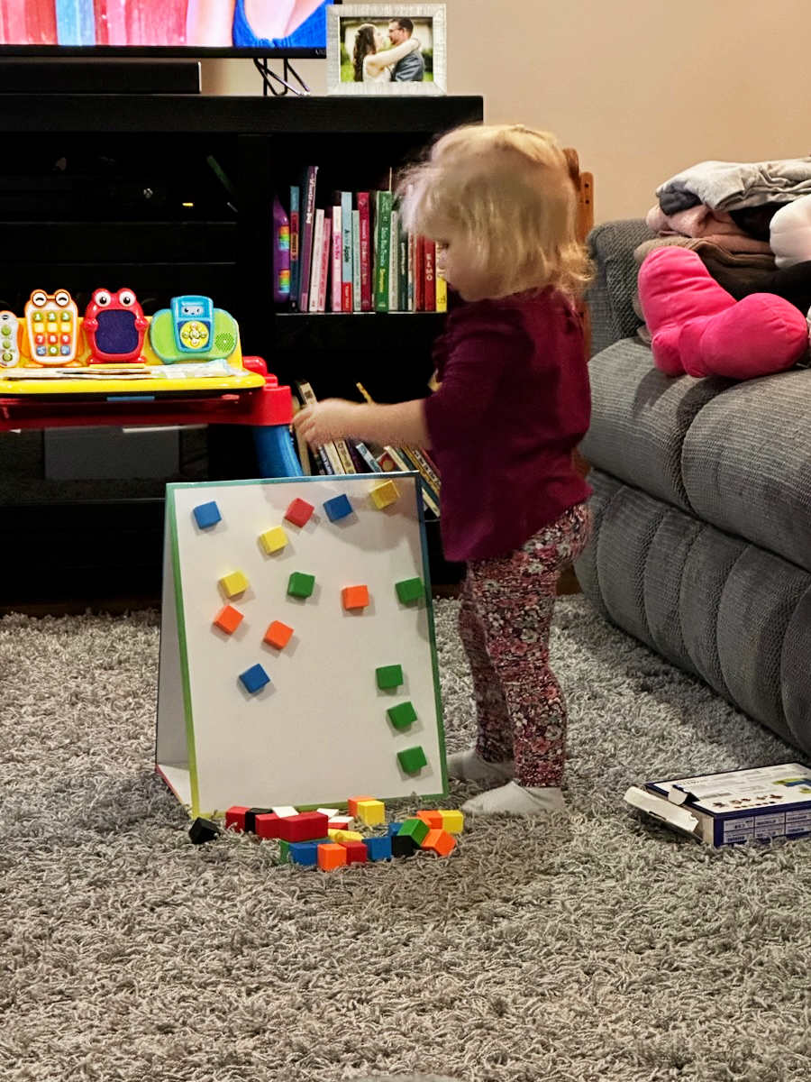 And earlier this evening, Kelly sent us this picture of Liv playing with the magnetic blocks we got her: