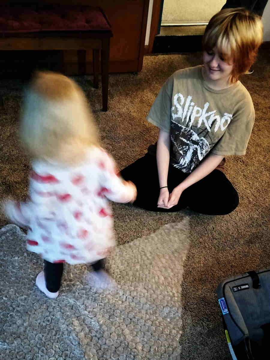 I figured I'd let Liv and Riley fight over it, or bond over it, or whatever they might choose to do with it. It turns out they were both content for Liv to repeatedly run across it, pop a few bubbles, and crack up before doing it again...