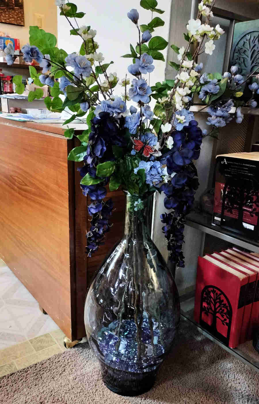 I decided to walk around and browse the housewares and home decor sections out of boredom, when I happened upon a beautiful blue glass floor vase. I figured they'd probably be asking $80 for it... but the price tag begged to differ.