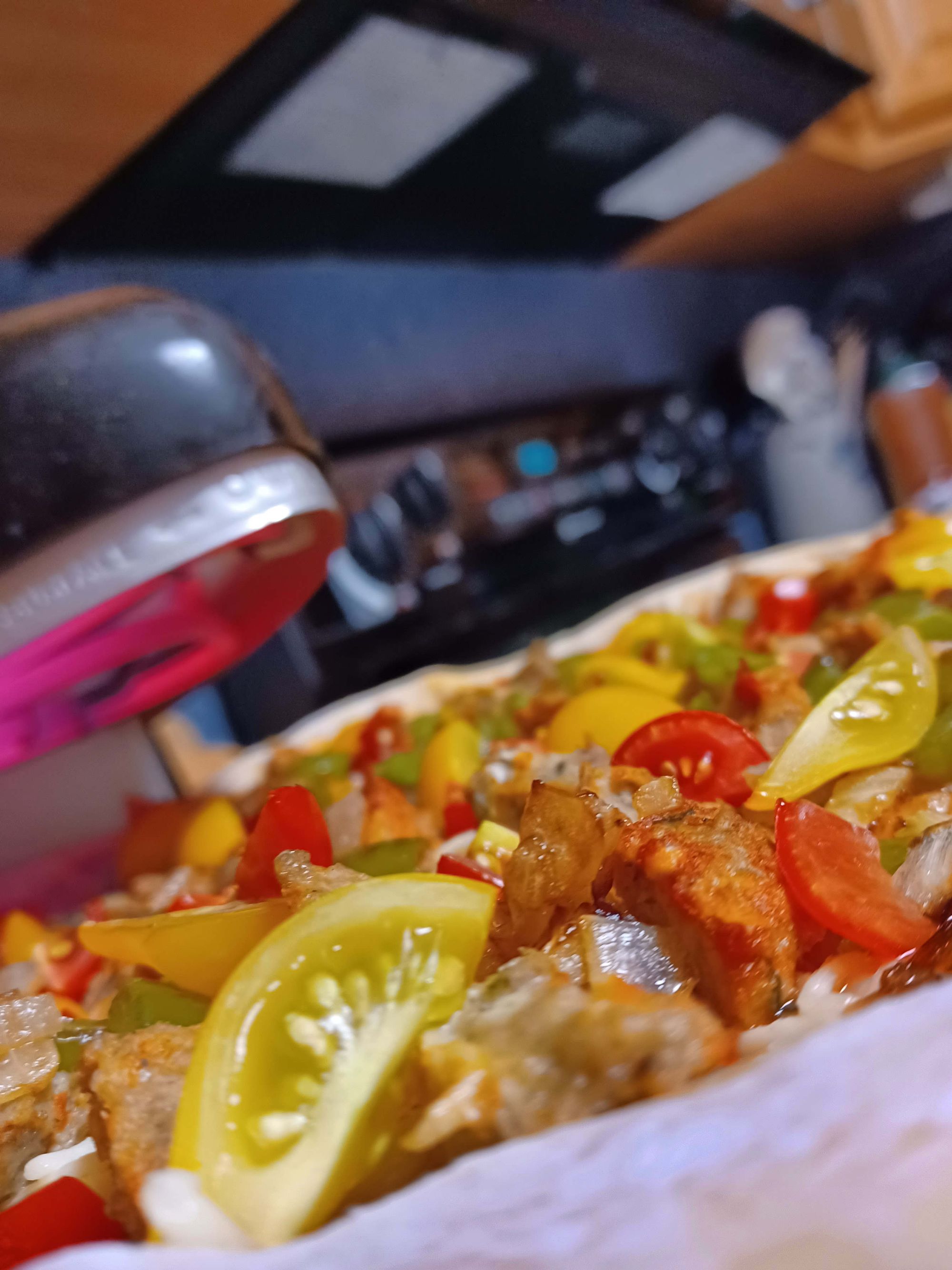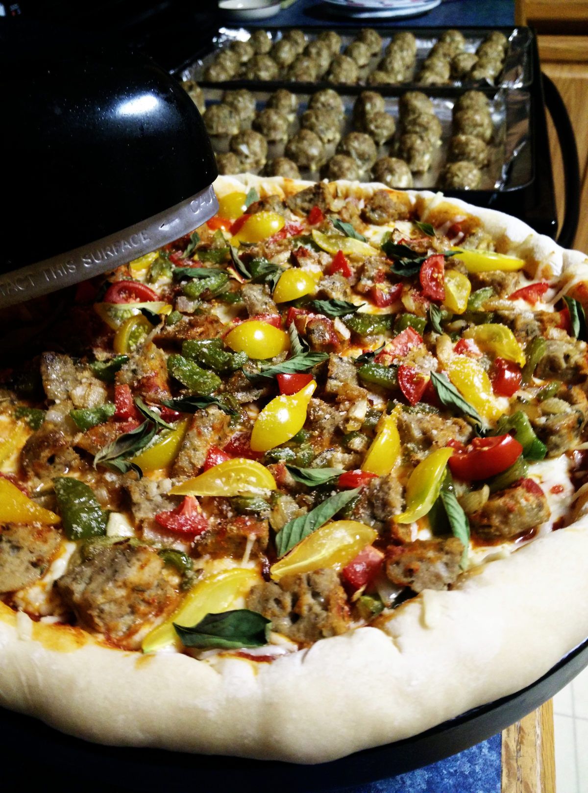 Sunday was pretty low-key, without much to report on (just relaxing and meal-prepping for the week). Athennia and I did pull a crazy huge harvest out of the garden though... and then whipped up a pretty awesome loaded-meatball-parmesan pizza for dinner...