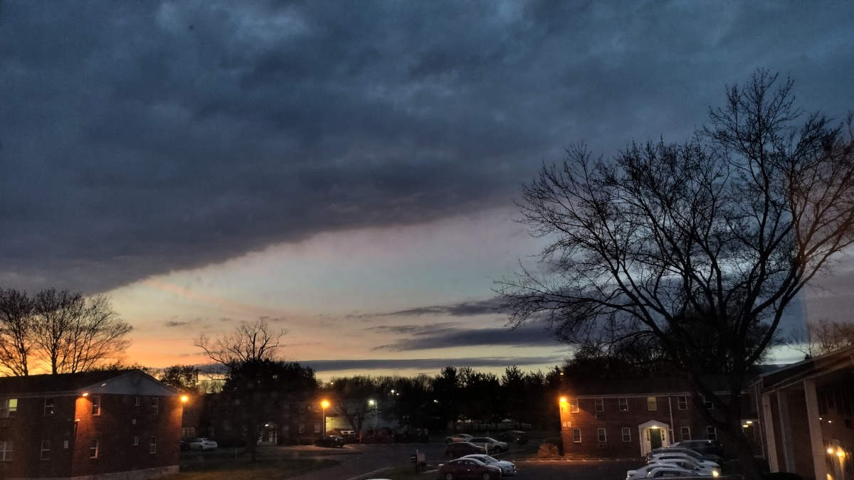 This probably-not-actually-a-nimbus cloud rolled through around sunset and made it look like some sort of blight was taking over Morrisville and Trenton—which is weird, since there seems to be a pretty effective blight in place here already. It's redundant—like putting a band-aid on top of a cast on someone's arm.