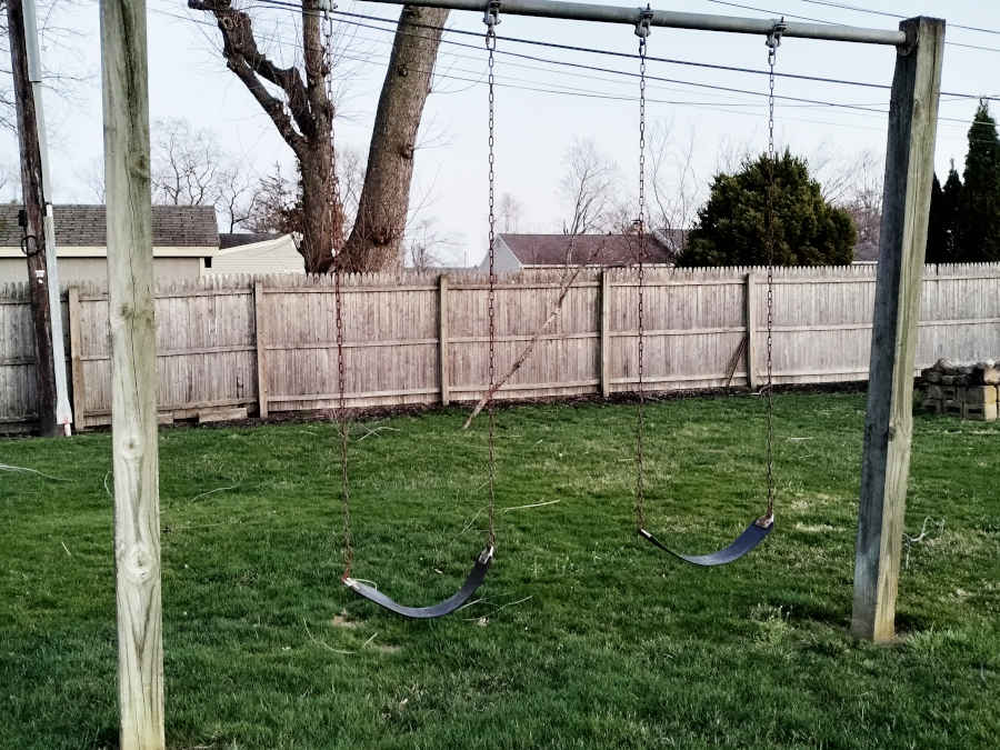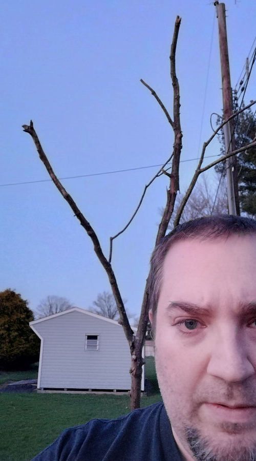 While we were outside, I noticed a giant branch that had come down in the backyard: The thing had literally skewered the ground and lodged itself a good five or six inches into the earth. It definitely could've killed someone with the swiftness and cunning of a rabid Trenton, if anyone had been around!