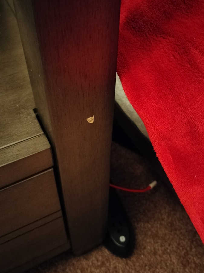 Exhibit A: An Odin booger left plastered to Kevin's nightstand