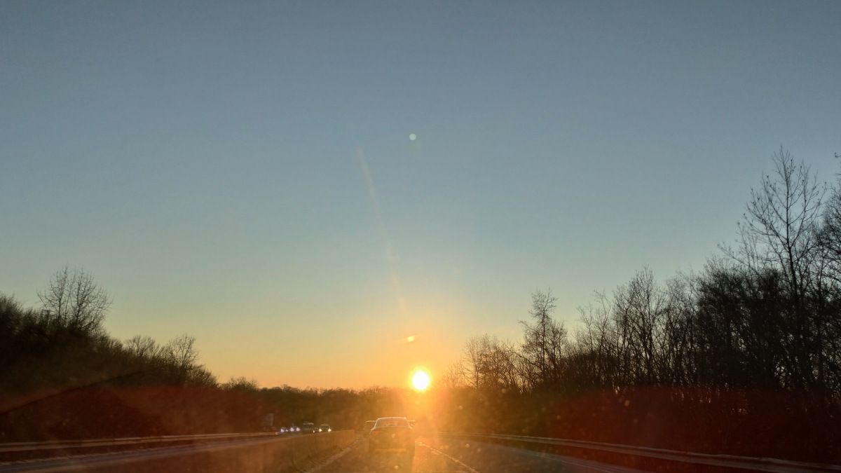 We got a dusting of snow that afternoon that was still around as we headed out: