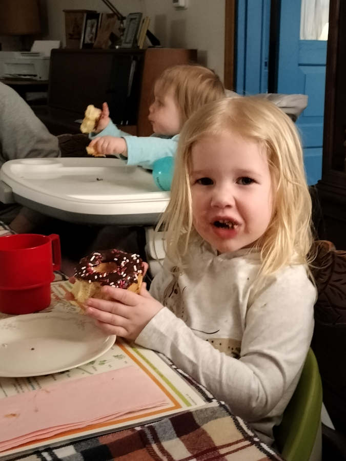 Catherine made her amazing lasagna for dinner. And it was, after all, Fasnacht Day, so Kelly brought doughnuts for dessert!