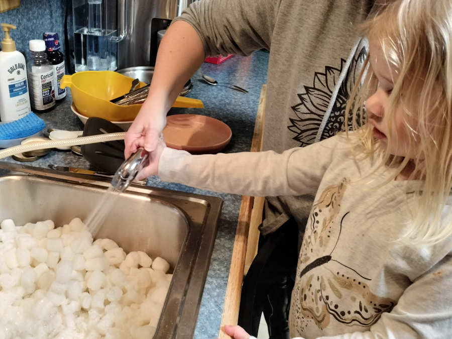And afterwards, Uncle Kev announced that he had a surprise in the kitchen sink and he needed Liv's help making some peanuts disappear: