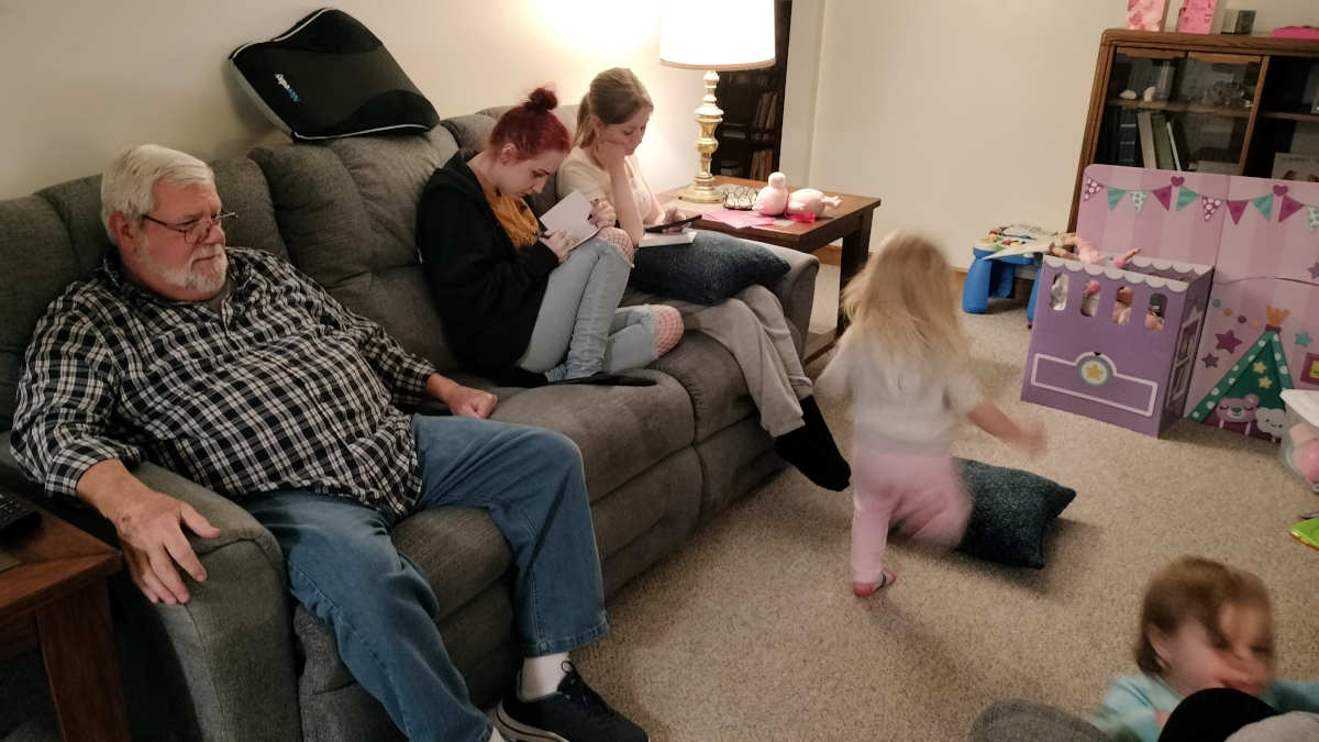 And then we all visited for a bit until it was nearing for the girls' bedtime and Kelly's family headed out.