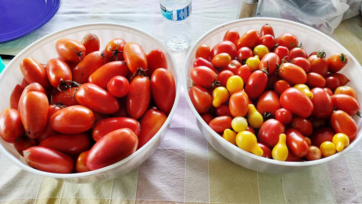 So, now we had a metric ton of tomatoes to use up before they went bad. (And, most of them had been lying on the ground when we grabbed them; so, we knew their shelf-lives would be drastically reduced...)