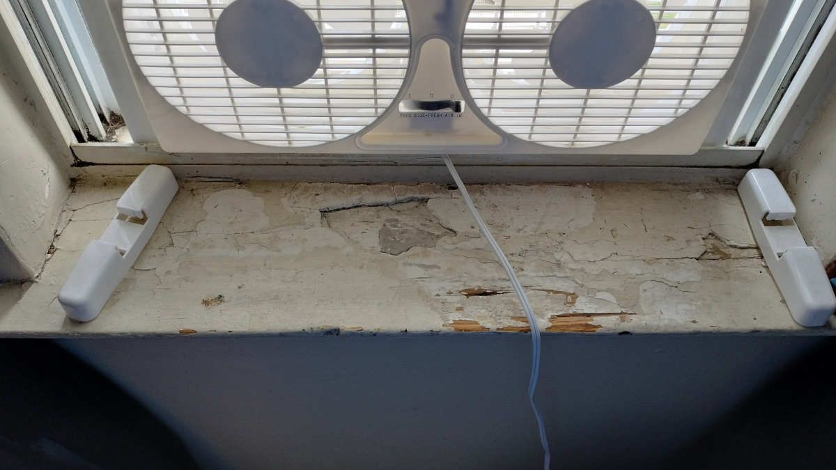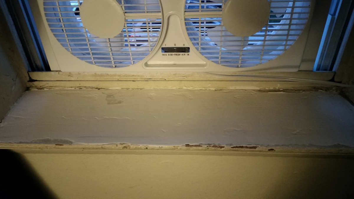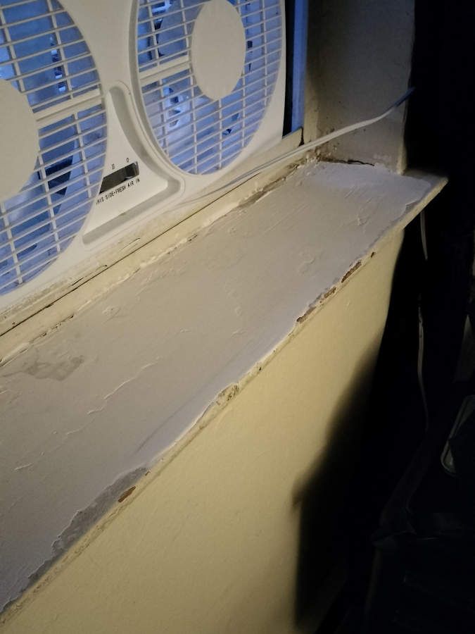 This is the result of years and years of the landlord's "Bare Minimum" policy: Instead of ever actually fixing anything, they gloss over it with a thin sheen of paint and a can do, but don't feel like it attitude.