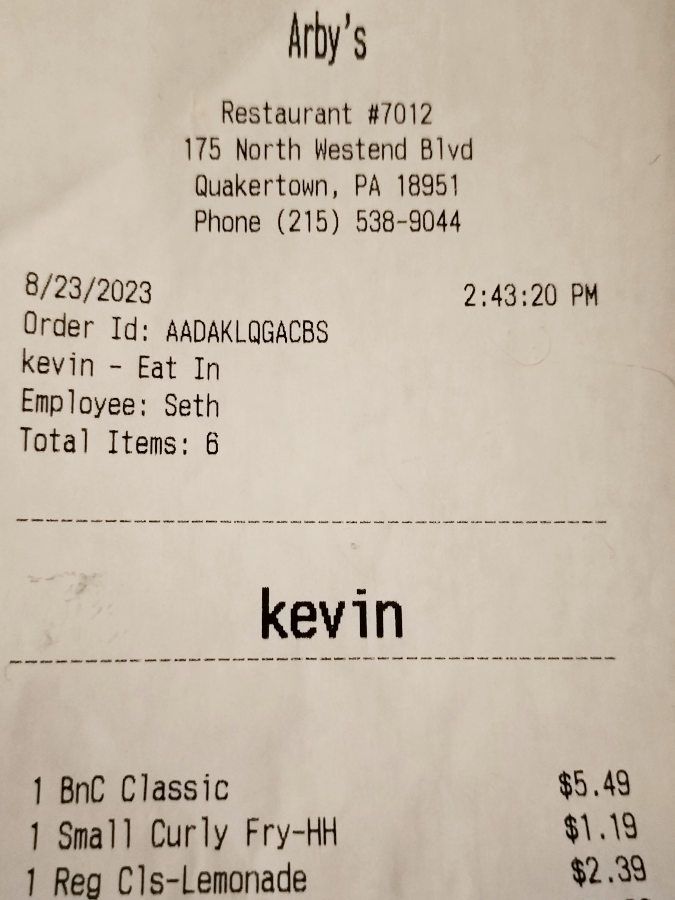 My mom and I stopped for lunch at Arby's in Quakertown on the way back, where—despite the friendly customer service and top-notch quality of the food—our cashier Seth apparently thought I was just common-noun material...