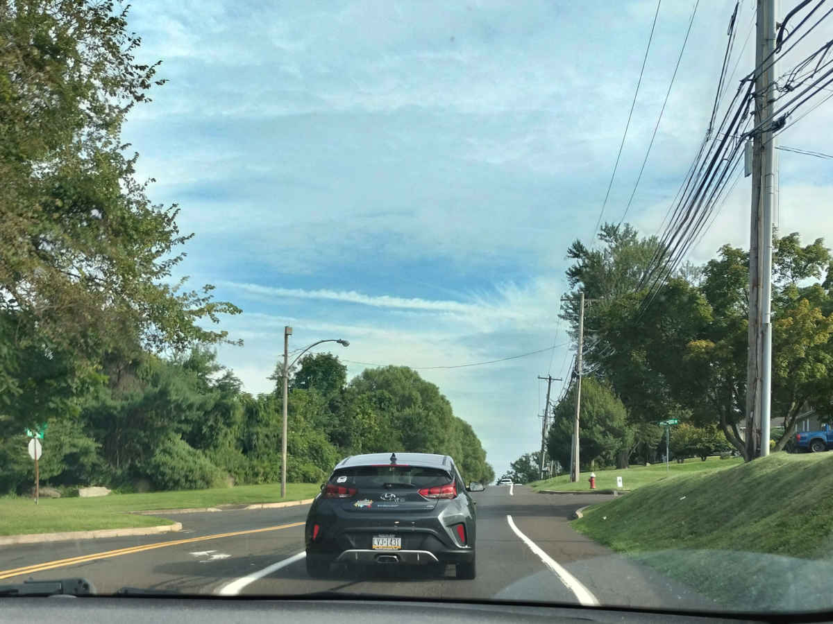 Athennia and I made our rounds dropping off veggie deliveries all over Bucks County—much like DoorDash, although there was no dash component to it whatsoever, thanks to this not-so-aptly named "Veloster" full of little high-school tykes behind whom we got stuck...