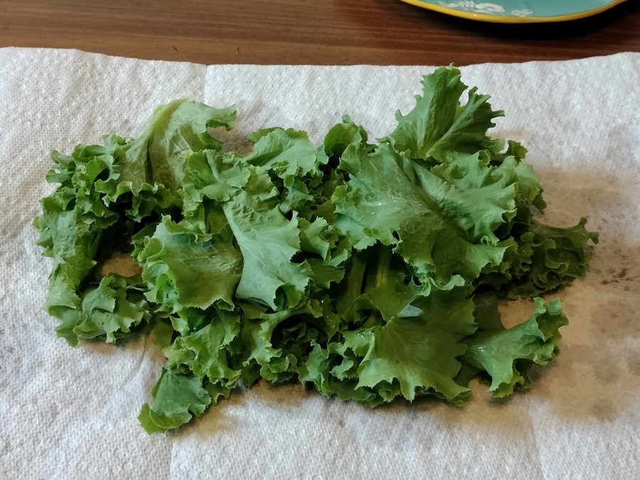 After lunch, I stopped by my parents' house and harvested a bunch more tomatoes, some lettuce, some Vietnamese coriander, and some volunteer mustard greens that came up from last year.