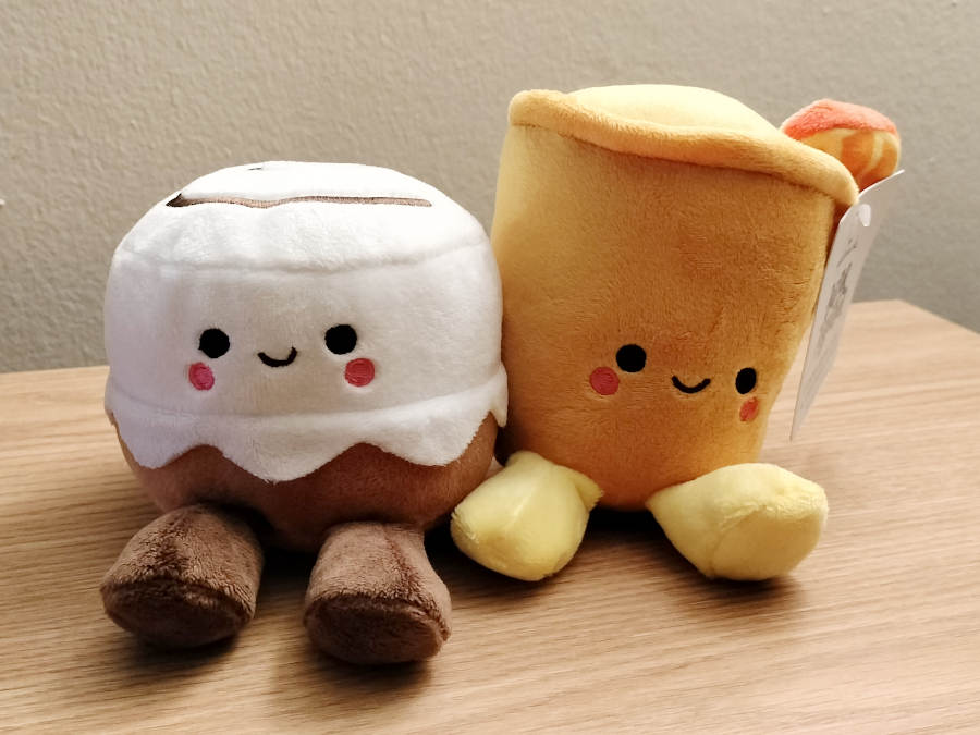A cinnamon roll and a glass of orange juice, because we often have cinnamon rolls for breakfast on the weekend, and I love orange juice.