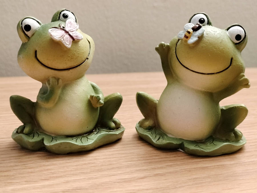 And also two frog figurines because I love frogs, I love butterflies, and we have a bee theme throughout a lot of our home decor: