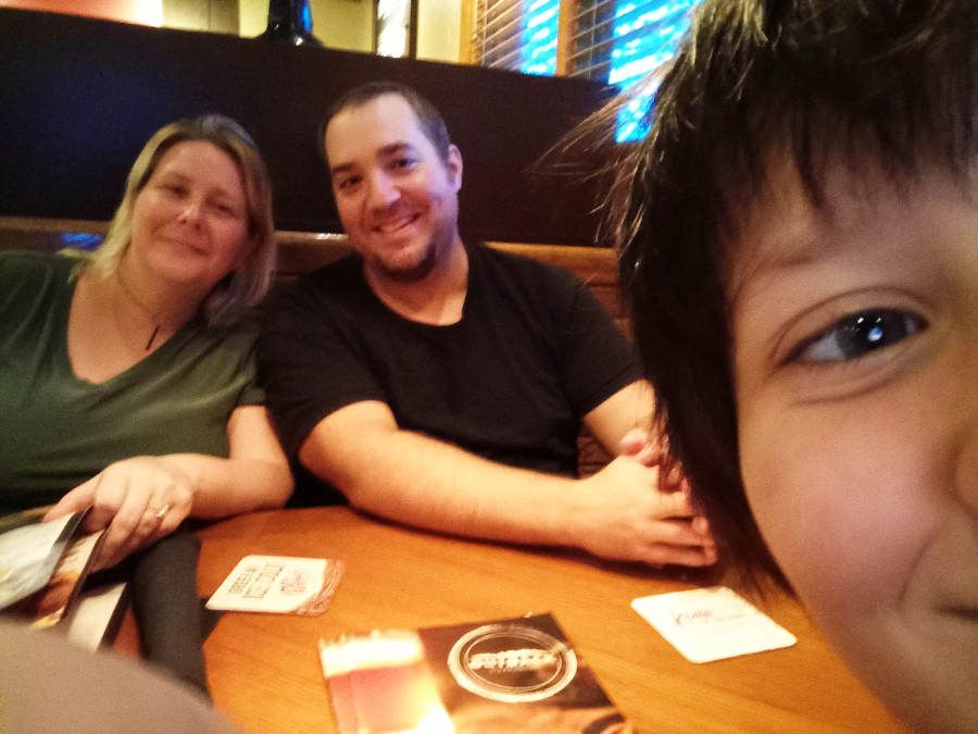 We had pizza at Kevin's parents' house, with Catherine and Ron; Kelly, Steve, and Olivia; and of course Kevin, Riley, and me.