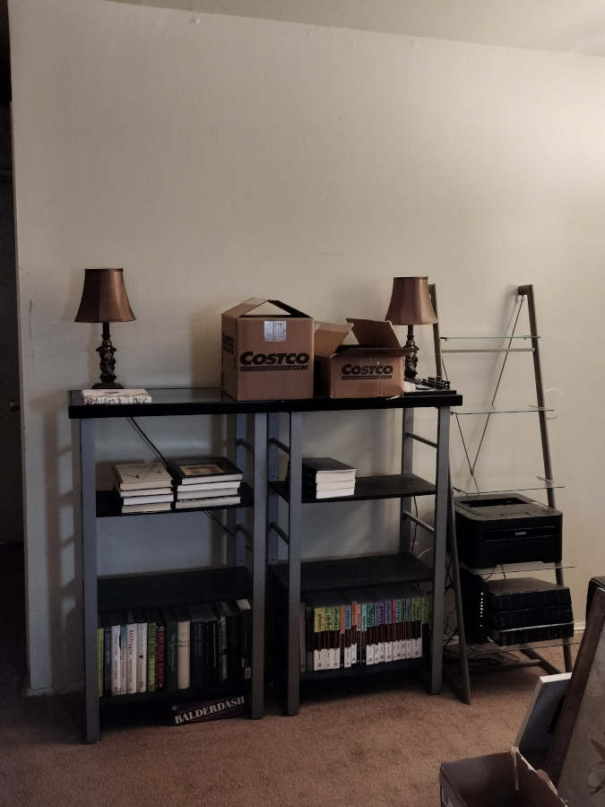 I had also spent a few hours packing up a bunch of my books and a good portion of our living-room decor: I know our actual move is likely still months away—but, since my parents now have four decent-sized guest bedrooms they barely use, they were nice enough to say we could pack things at our leisure and store them over there so we can make a quick, clean break from the apartment when the time comes :)