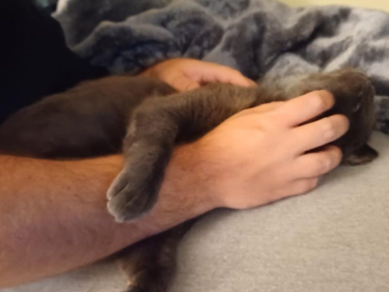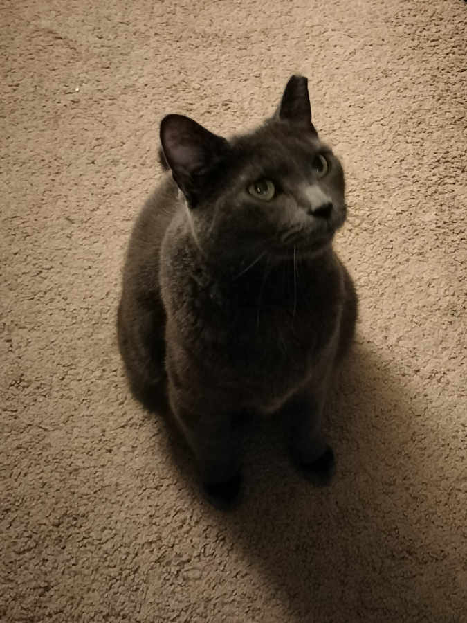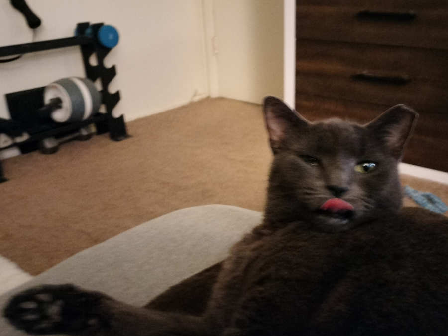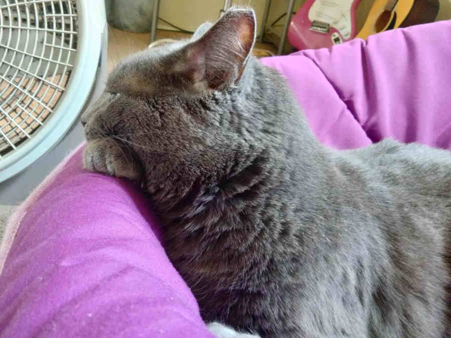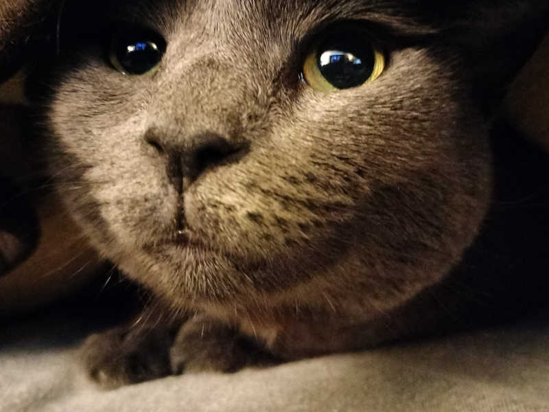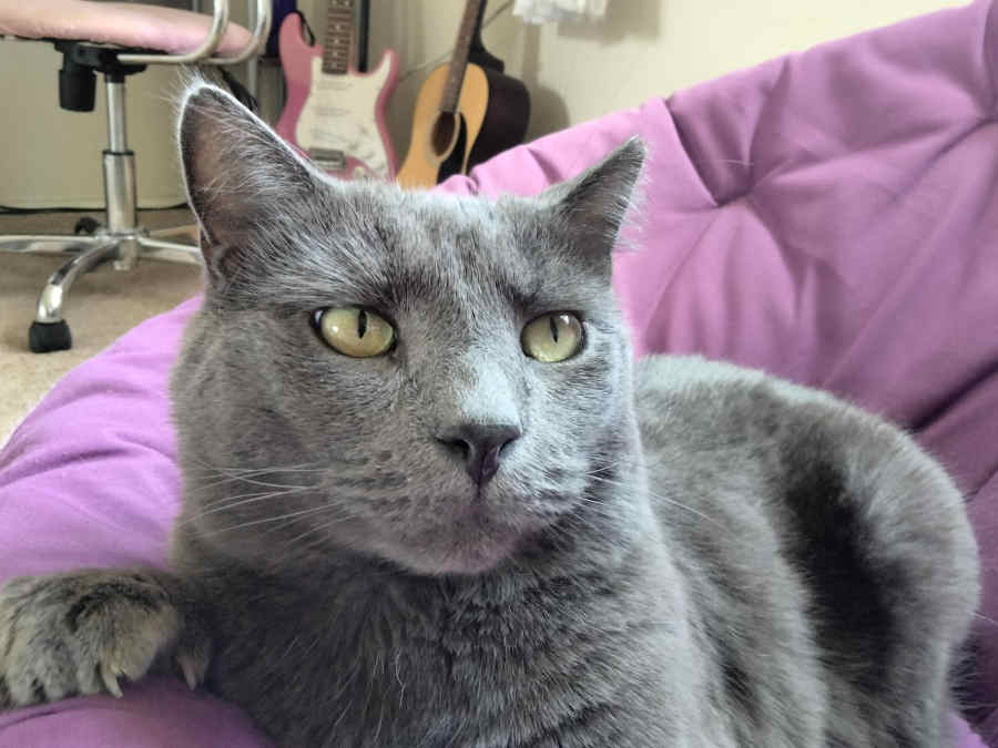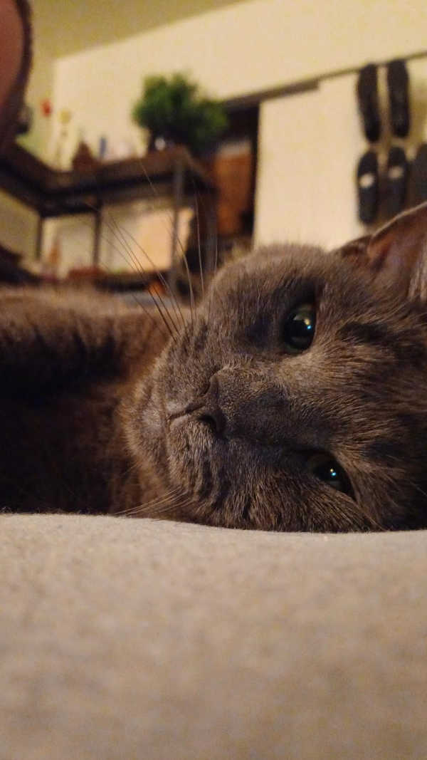 Not quite a smile... but proof that Riley has a chin!