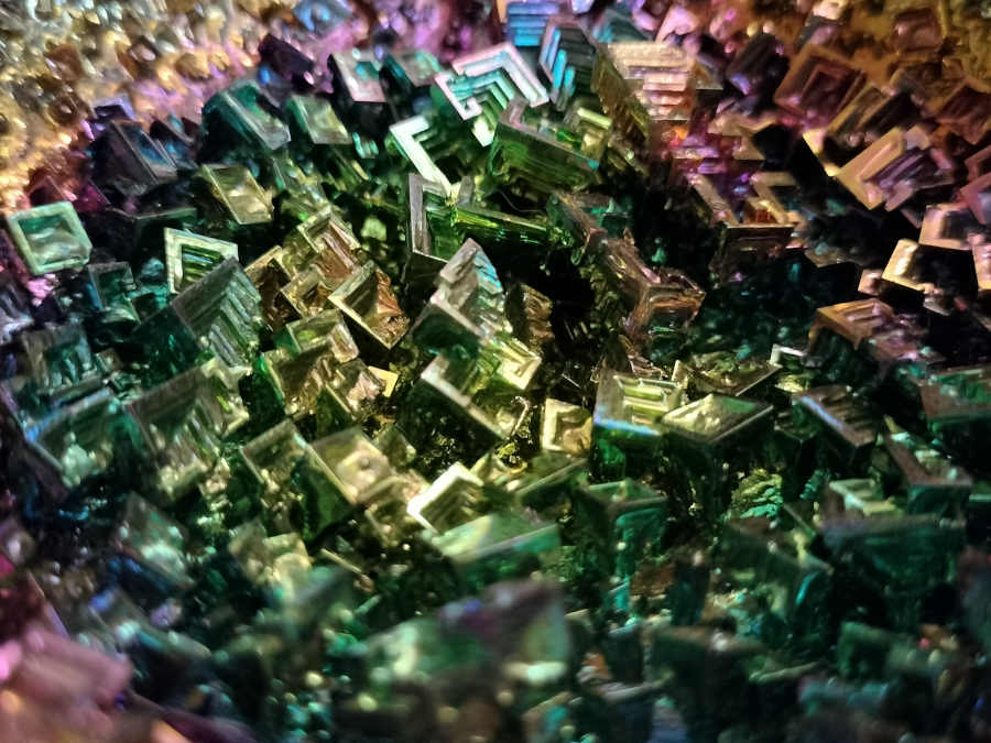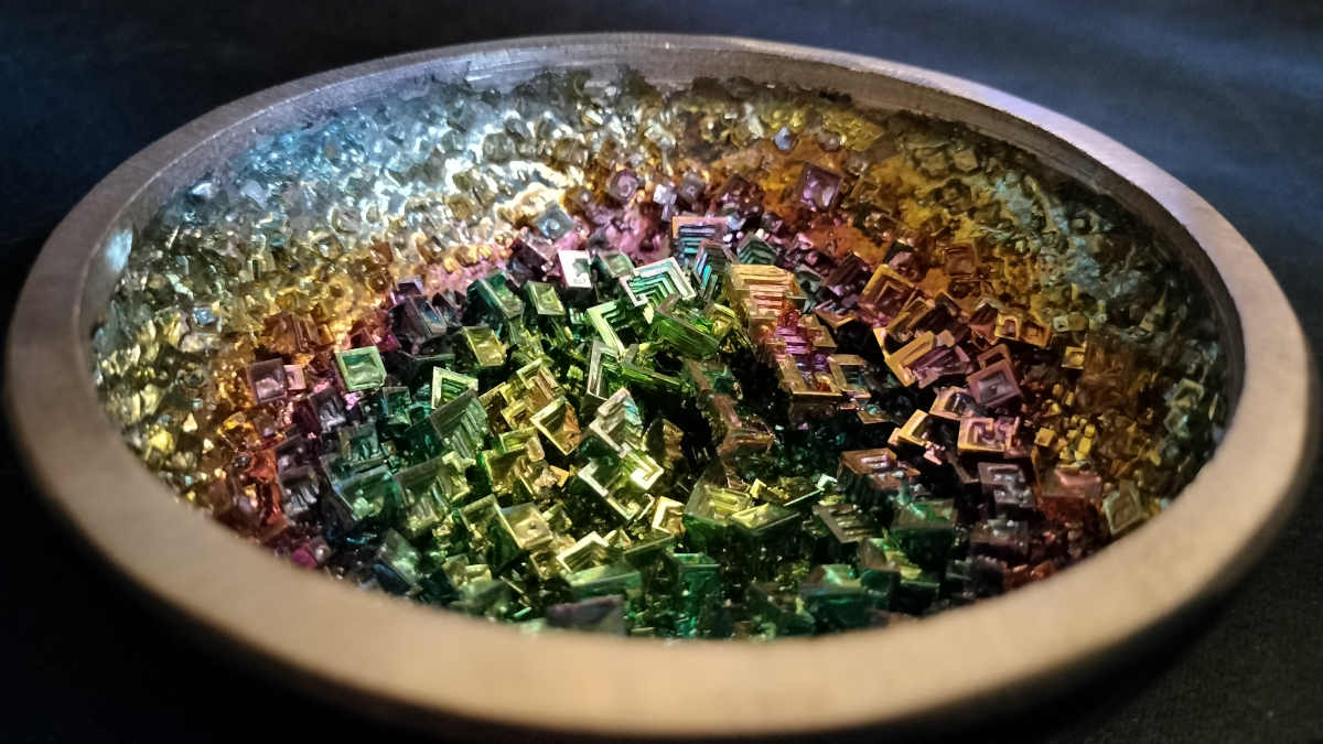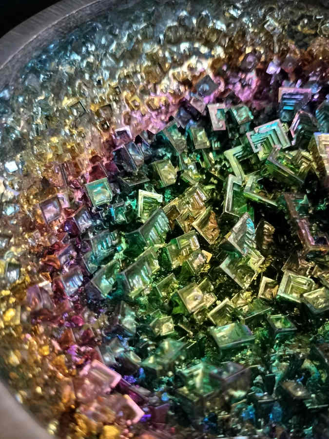 Real quick—just because this ended up not getting covered in Kitten's writeup last night—I wanted to share a few pictures of the bismuth crystal dish she got me for Valentine's Day...