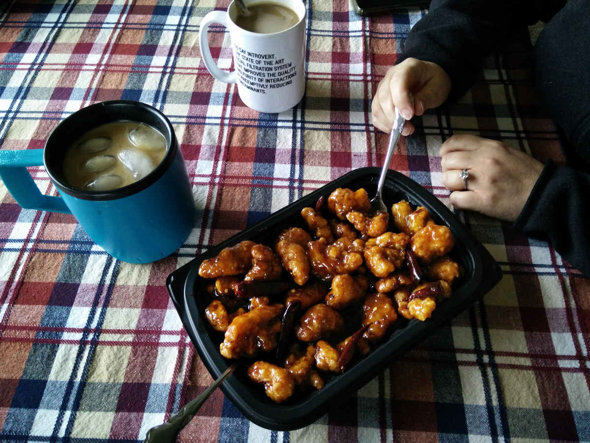 Athennia thought it was just tso-tso, but I liked that there were almost as many hot peppers as bites of chicken. (It was way too hot for her after her first ~5 bites; so, I ended up essentially killing this entire thing myself.)