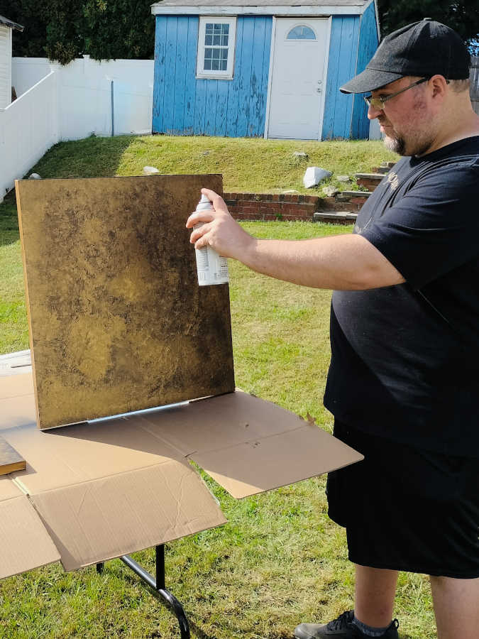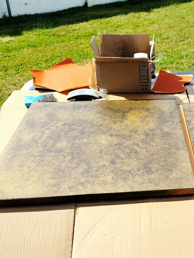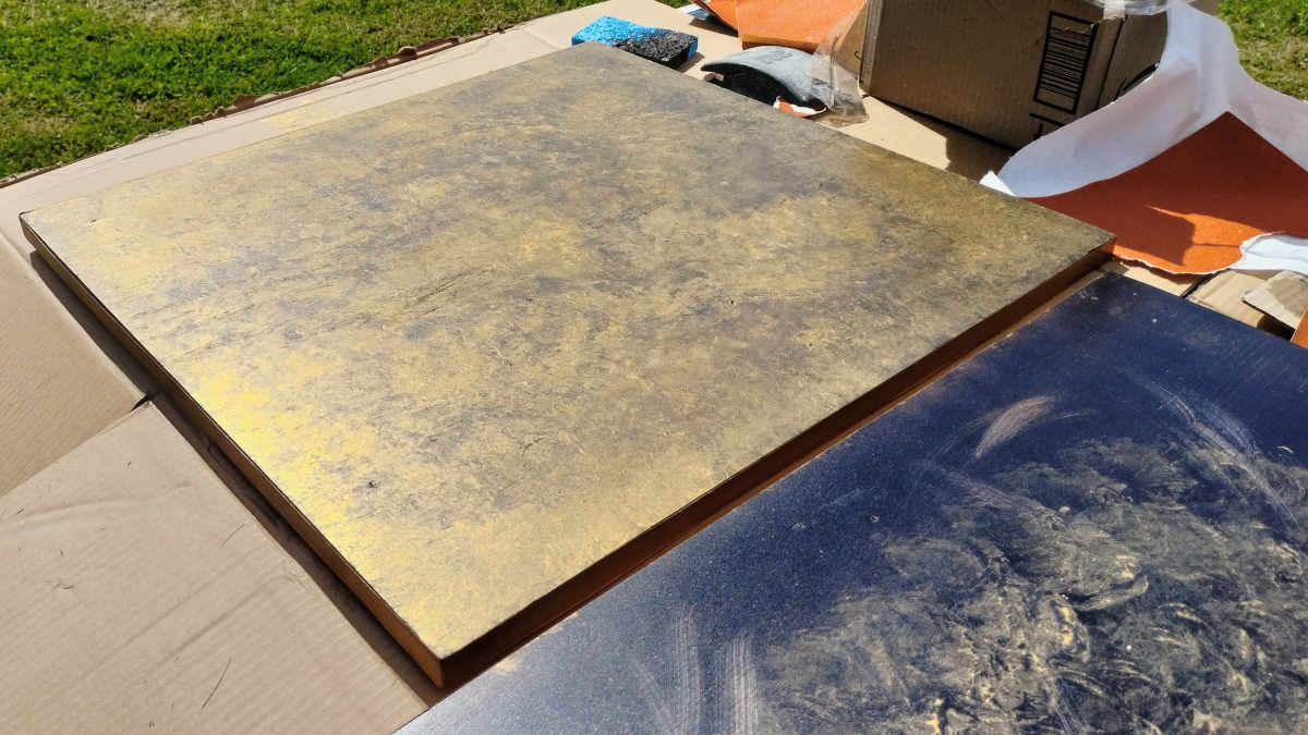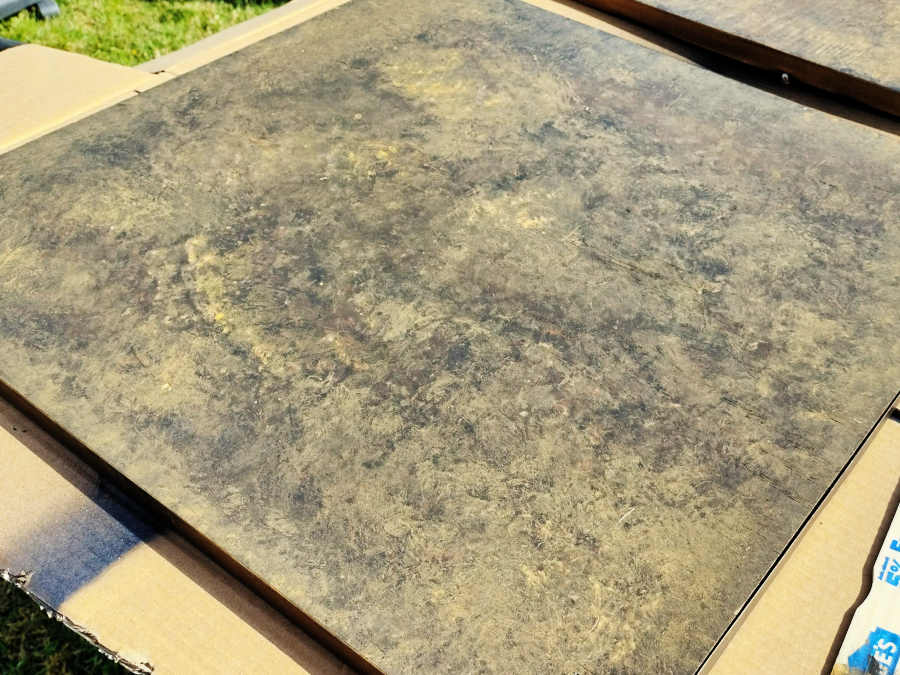 After I painted both slabs, we propped them up on a table in Joe's backyard to let them dry.