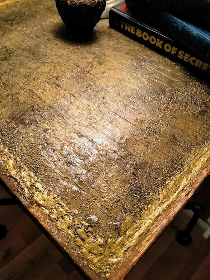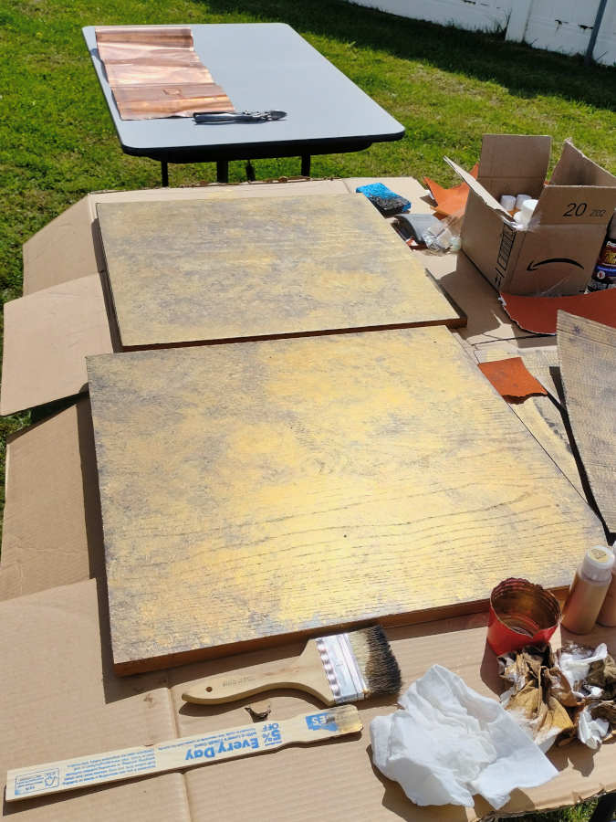 These first coats of my gilding and faux-leather paint jobs left a lot to be desired; but I knew they'd get better with subsequent coats.
