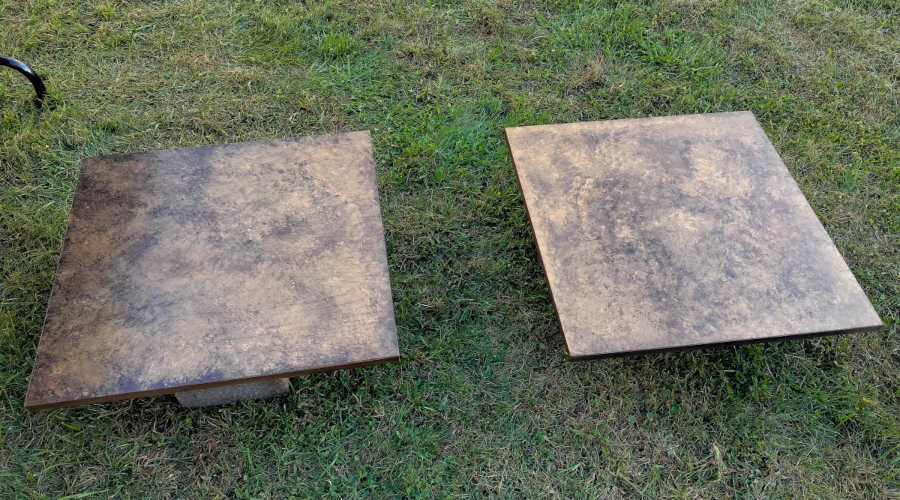 The tables were by now fully dry, although Joe and I weren't thrilled about how conspicuous the packing tape still was, even under all that silicone.