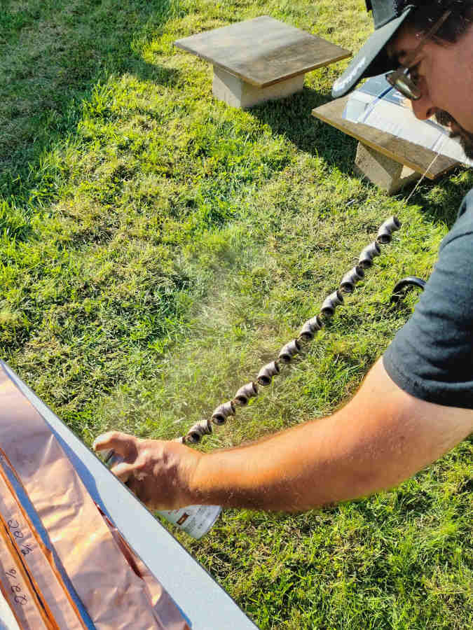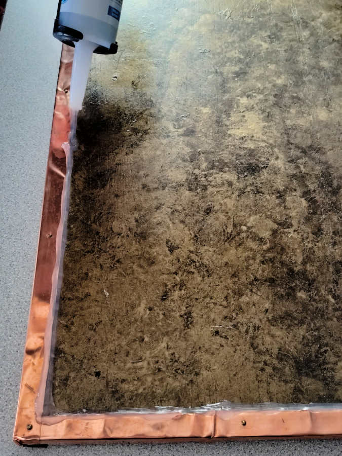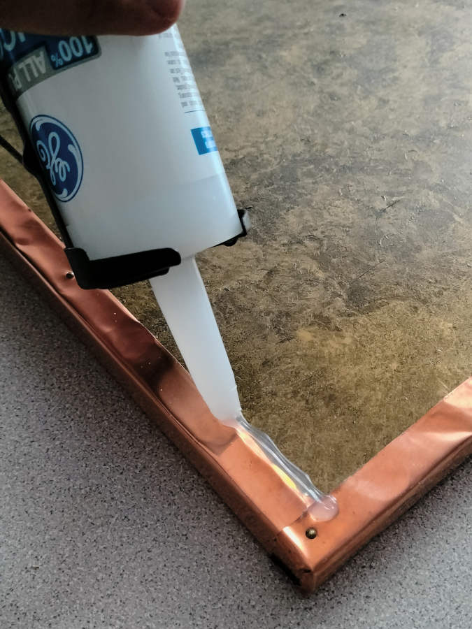 After trying a few more ideas, Joe had had it with attempting to use the silicone to seal off the sharp copper edge.
