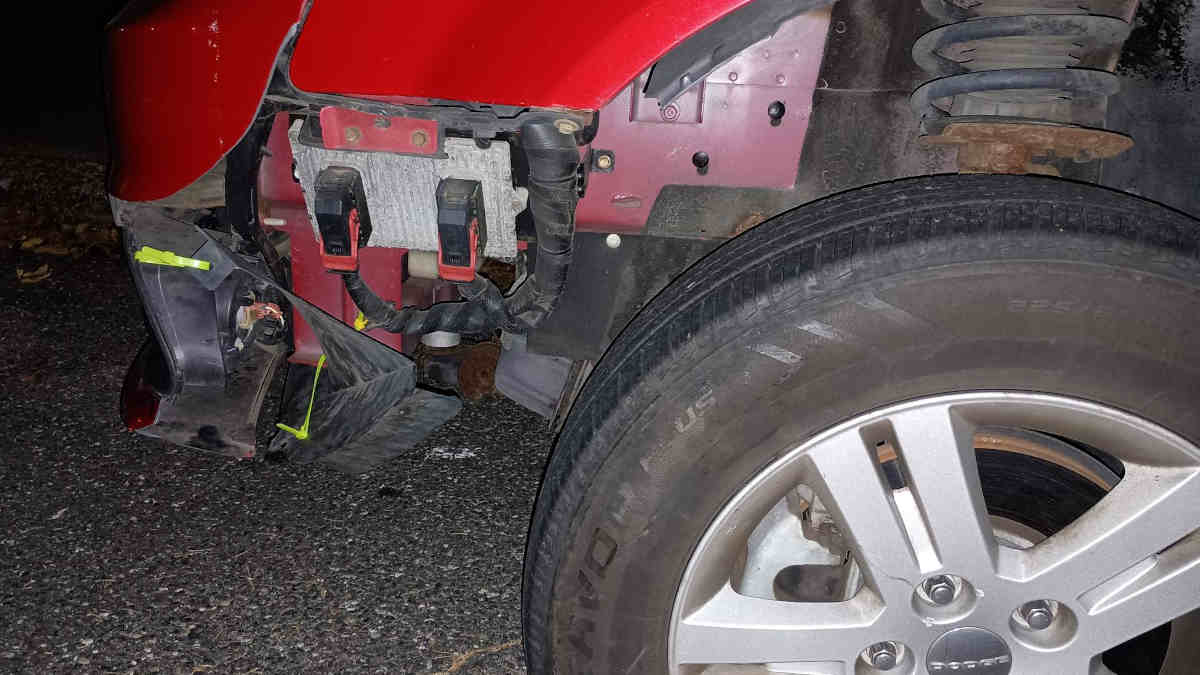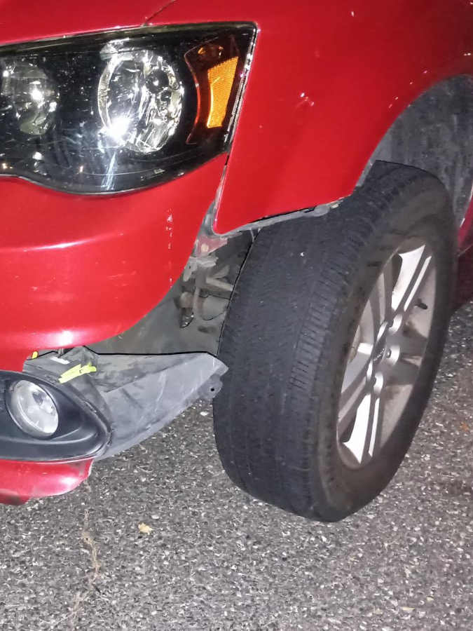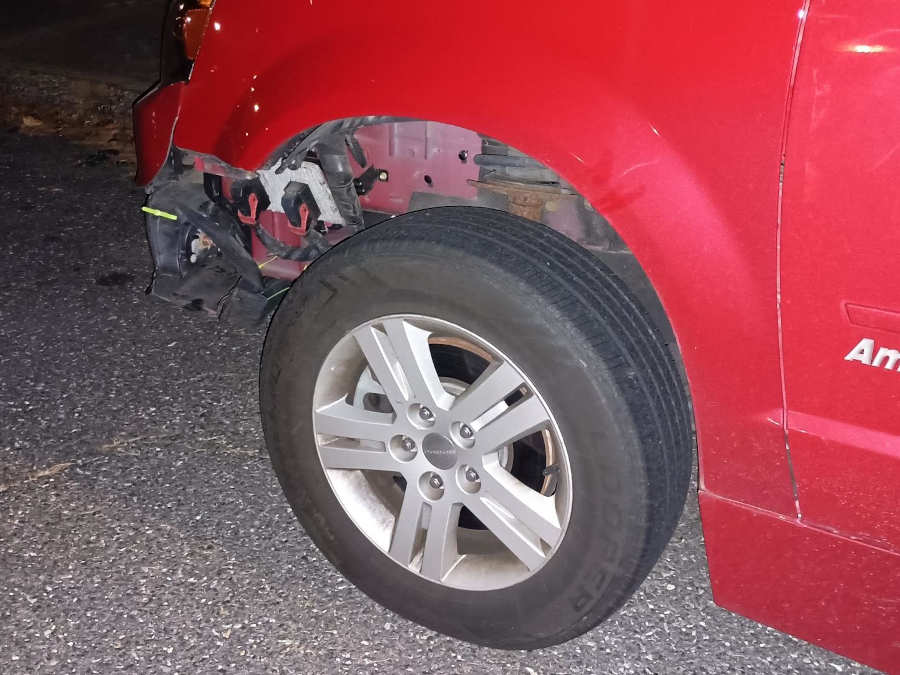 First a truck in front of us on the highway had a blowout and slingshotted his spent tire back at us like a rubber cannonball that took off the front bumper of Joe's van...