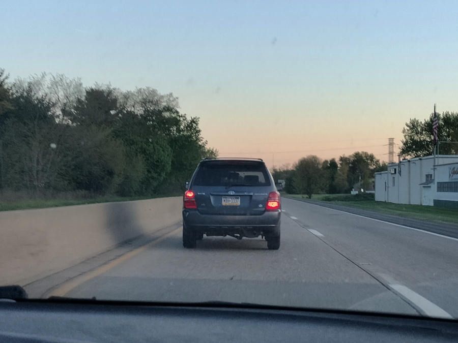 I almost forgot that we got stuck behind this cockeyed goofball on the way over to the park; and I mentioned that if I were a cop pulling them over, I'd stroll up to their driver's-side window like this...