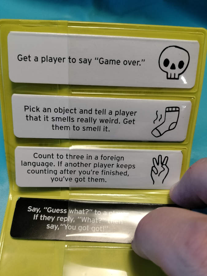 Basically, everybody gets a set of "secret missions" that they have to try to accomplish throughout the duration of the party—but without getting called out on it (like, "Hey, wait; is this part of the game?")