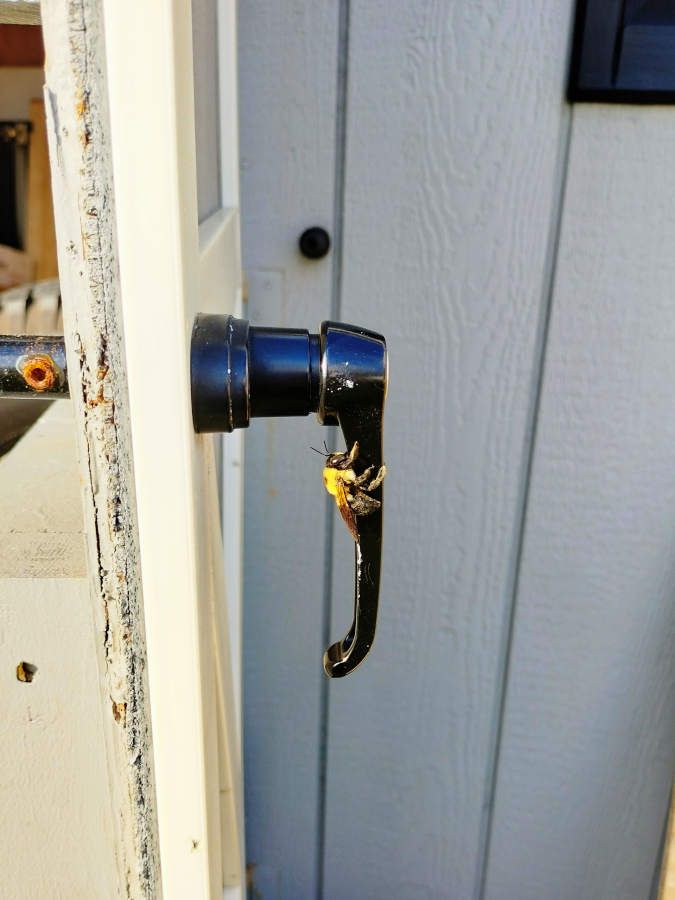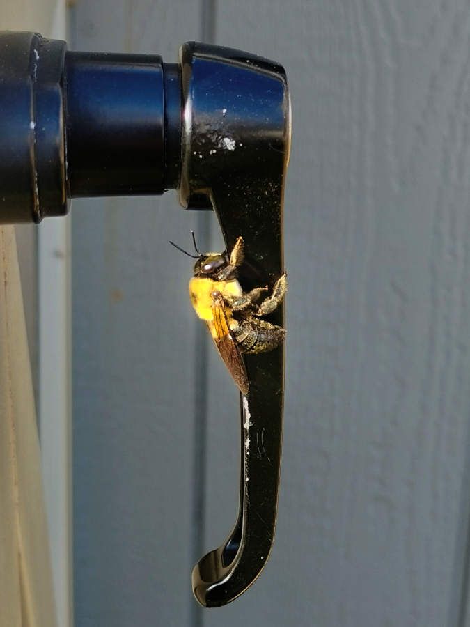 Kevin worked with Joe again on Wednesday and Thursday and sent me these pictures of a bee on the shed door :)