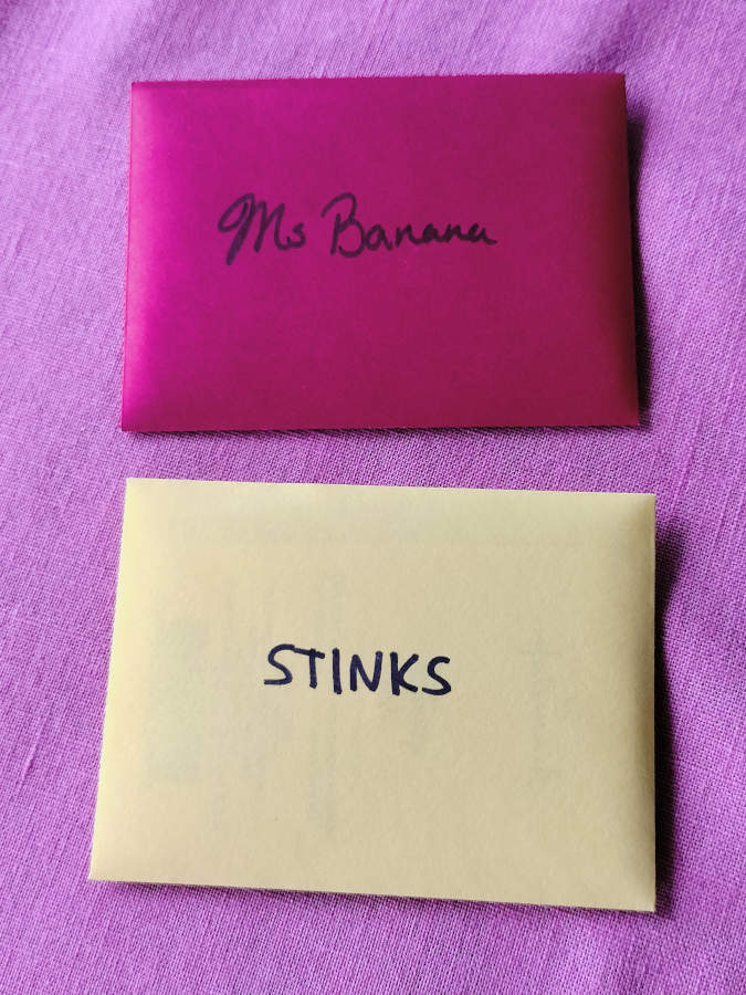 Hannah's was a colunterfeit Certificate of Yumminess so she could reopen her restaurant that the Health Department shut down last month because all her food was all over my parents' living-room floor.