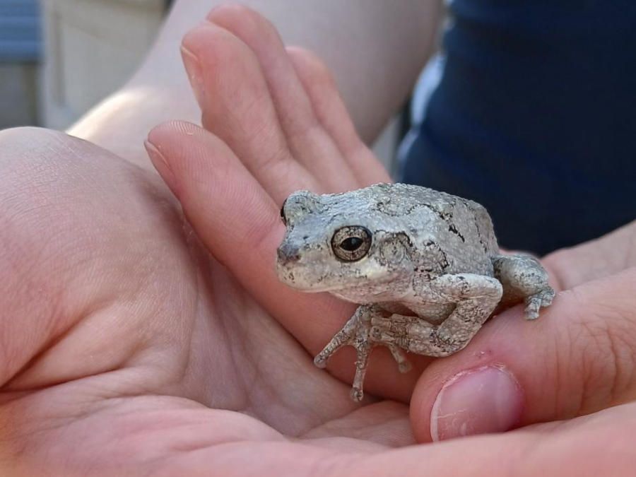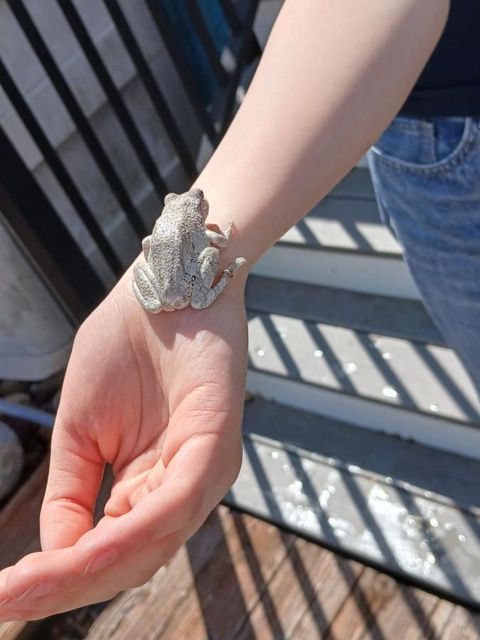 It's like a dog whistle to Riley whenever there's a small animal around; so she came running out to catch one...